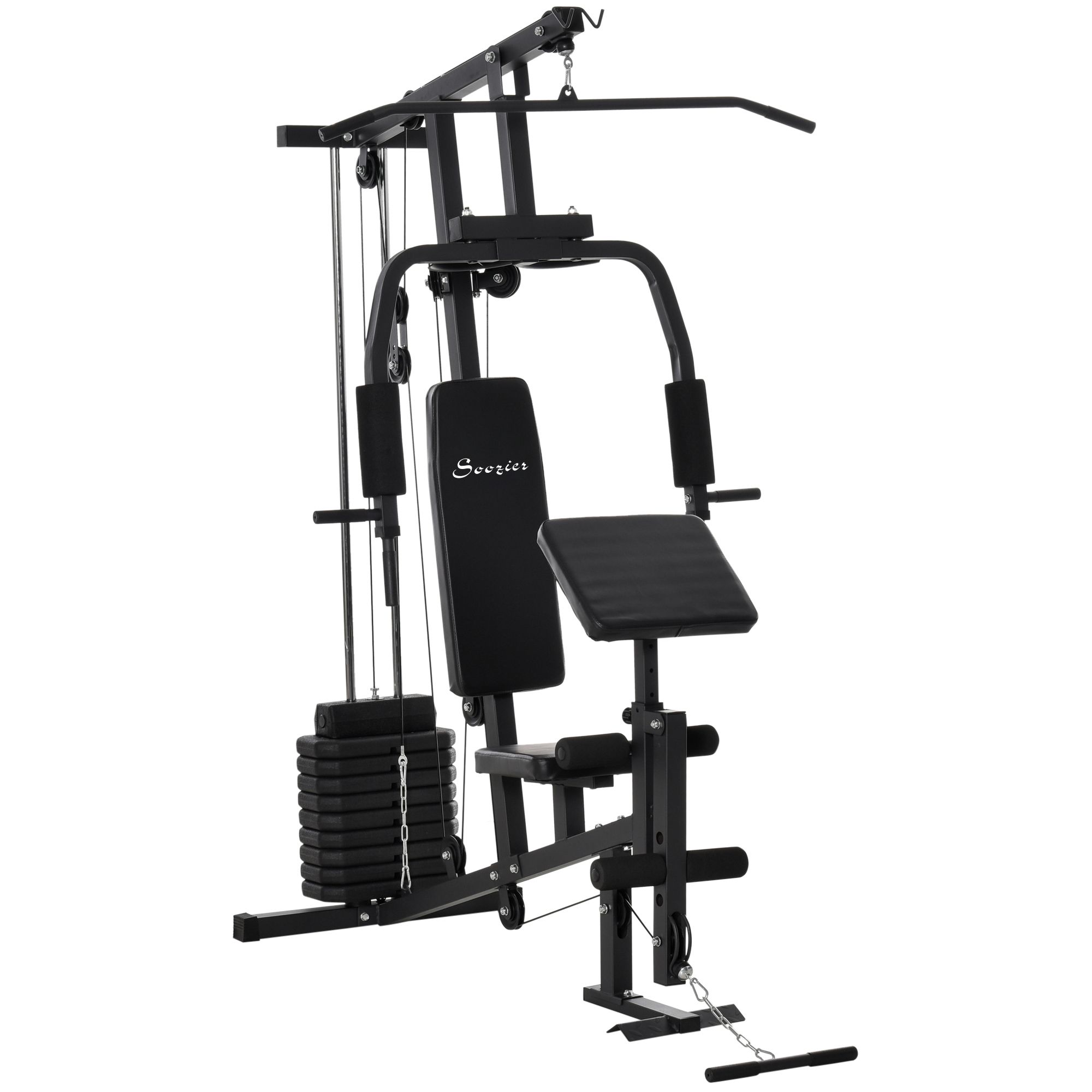 This home multi-exercise strength training equipment from Soozier allows you to take control of your home workout routine. You can use it to train your arms, legs, waist, and ab muscles for a full body workout. Adjust the weight amount and angle of the leg developer to keep your workouts challenging and effective.