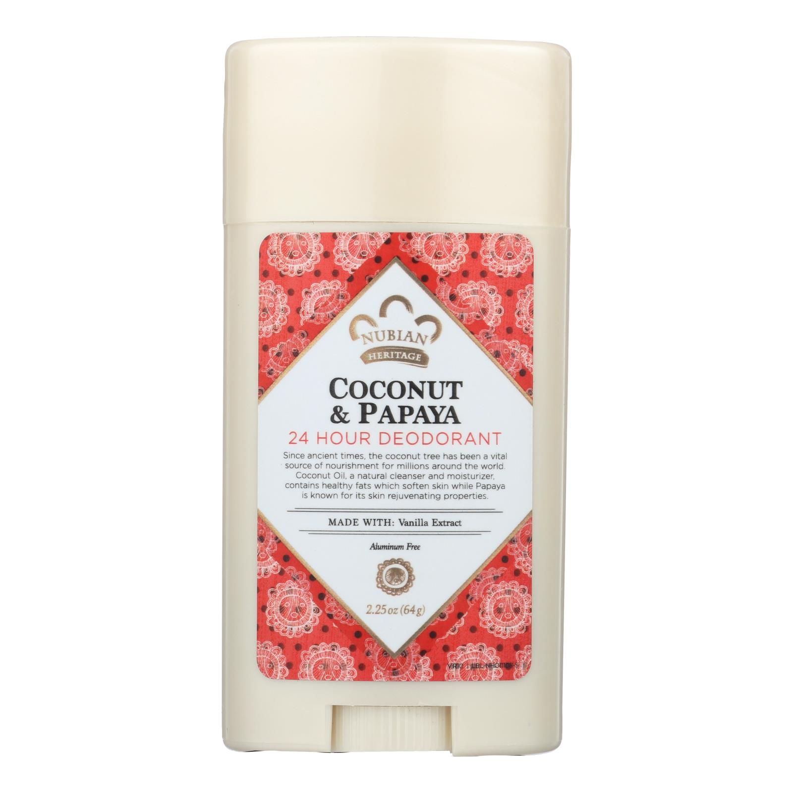 Nubian Heritage Deodorant - All Natural - 24 Hour - Coconut And Papaya - With Vanilla Oil - 2.25 Oz Nubian Heritage Deodorant - All Natural - 24 Hour - Coconut And Papaya - With Vanilla Oil - 2.25 Oz