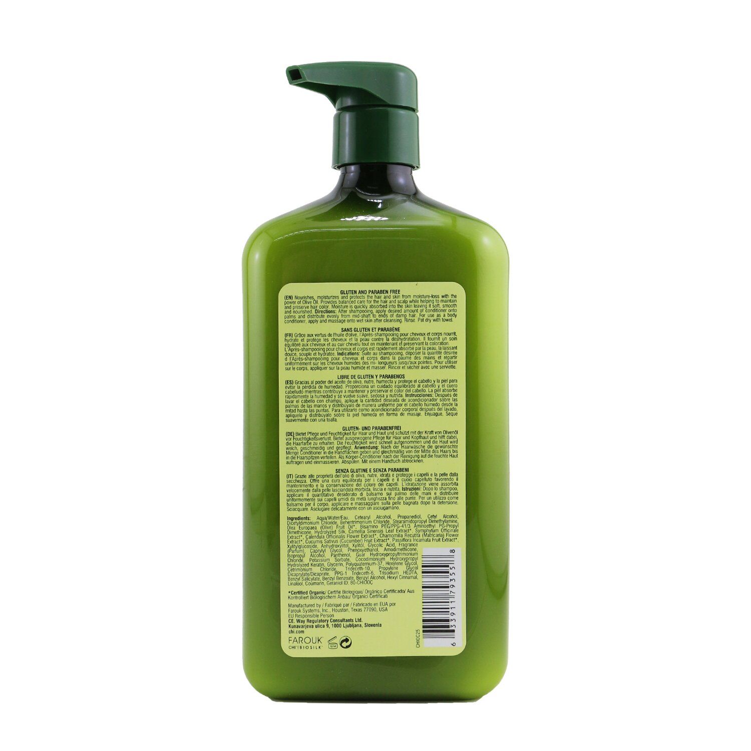 An organic, nourishing & moisturizing conditioner for hair & skin Formulated with Olive Oil to nourish, moisturize & protect hair & skin Provides balanced care for hair & scalp while maintaining hair color Leaves hair & skin soft, smooth & conditioned Free of sulfate, parabens & gluten